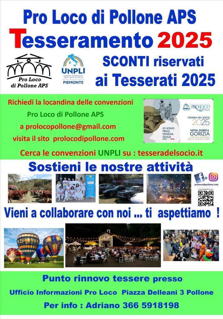 Contatti : cell. 366 5918198 – prolocopollone@gmail.com
